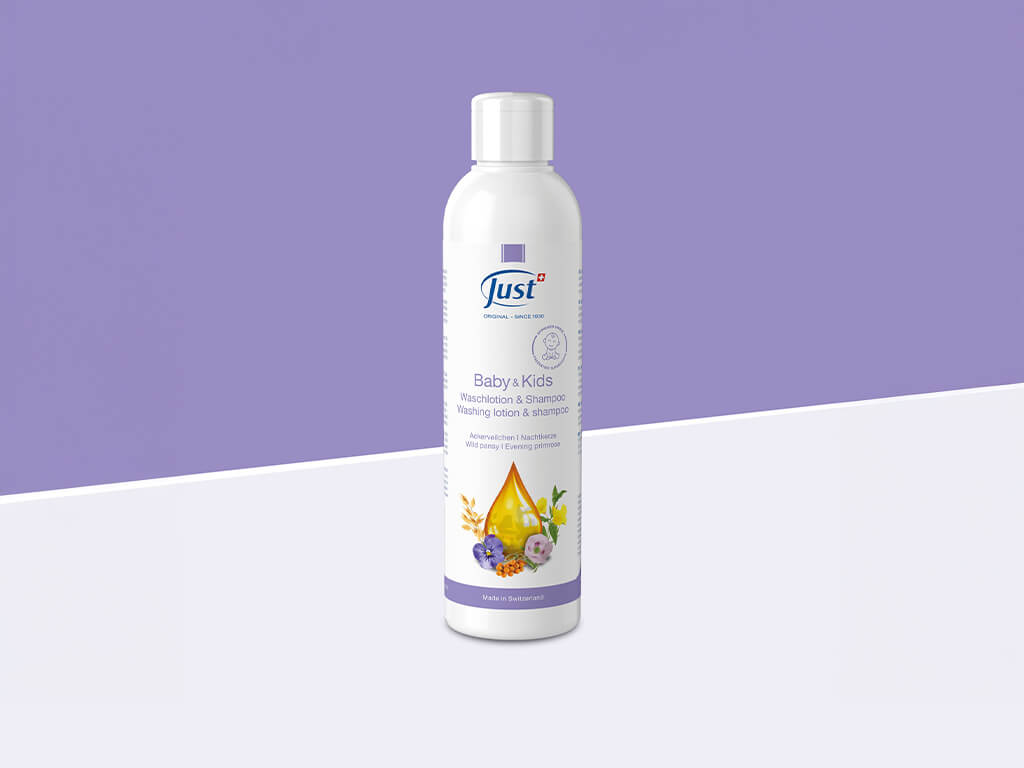 Por primera vez de la investigación Just, limpieza específica para la piel, el cuero cabelludo y el cabello de los más pequeños.