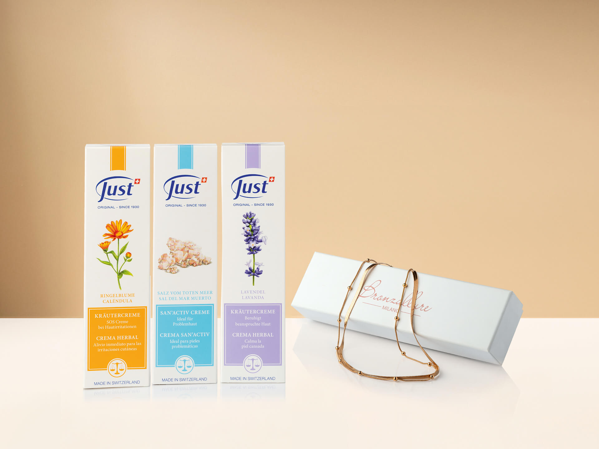 - el Set Cremas dermoactivas, con 3 productos para elegir de la línea de las «panaceas de Just» para el bienestar.