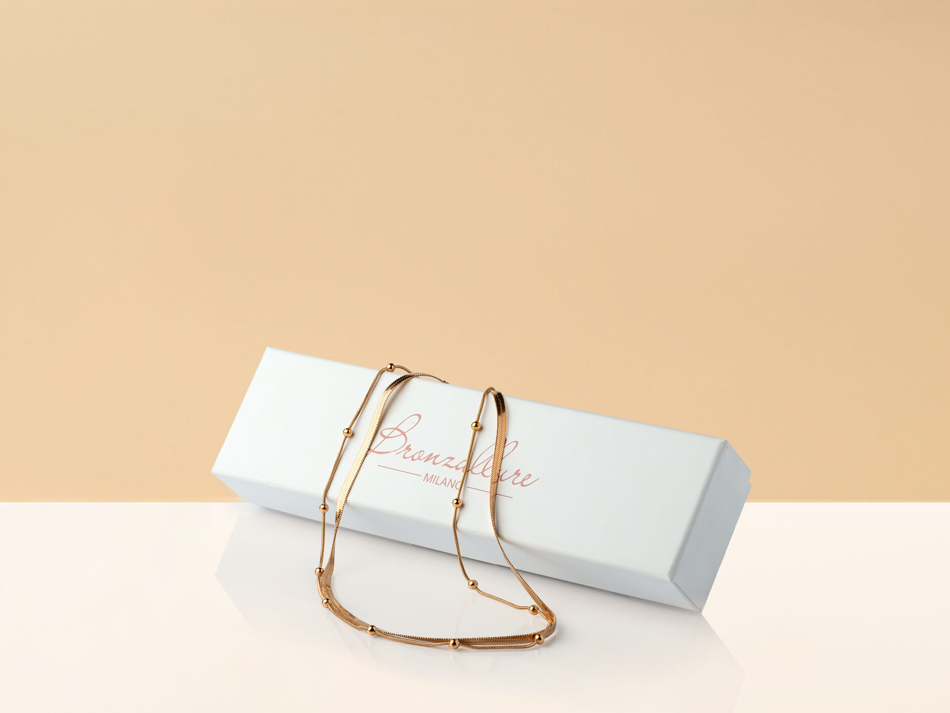 Ambos sets incluyen el collar de Bronzallure en acero certificado, con un revestimiento patentado en color oro rosa.