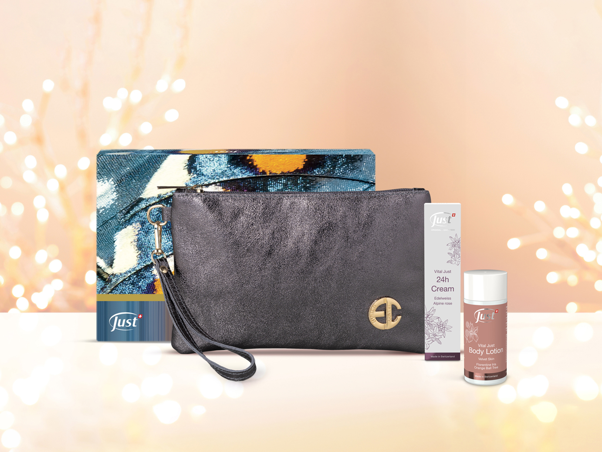 El Set «Invitación a la belleza» (3 productos Vital Just tamaño viaje con bolso de mano y caja decorada) está a tu disposición solo durante estos días en Venta especial a 39,50 €: llama a tu Consultor/a!