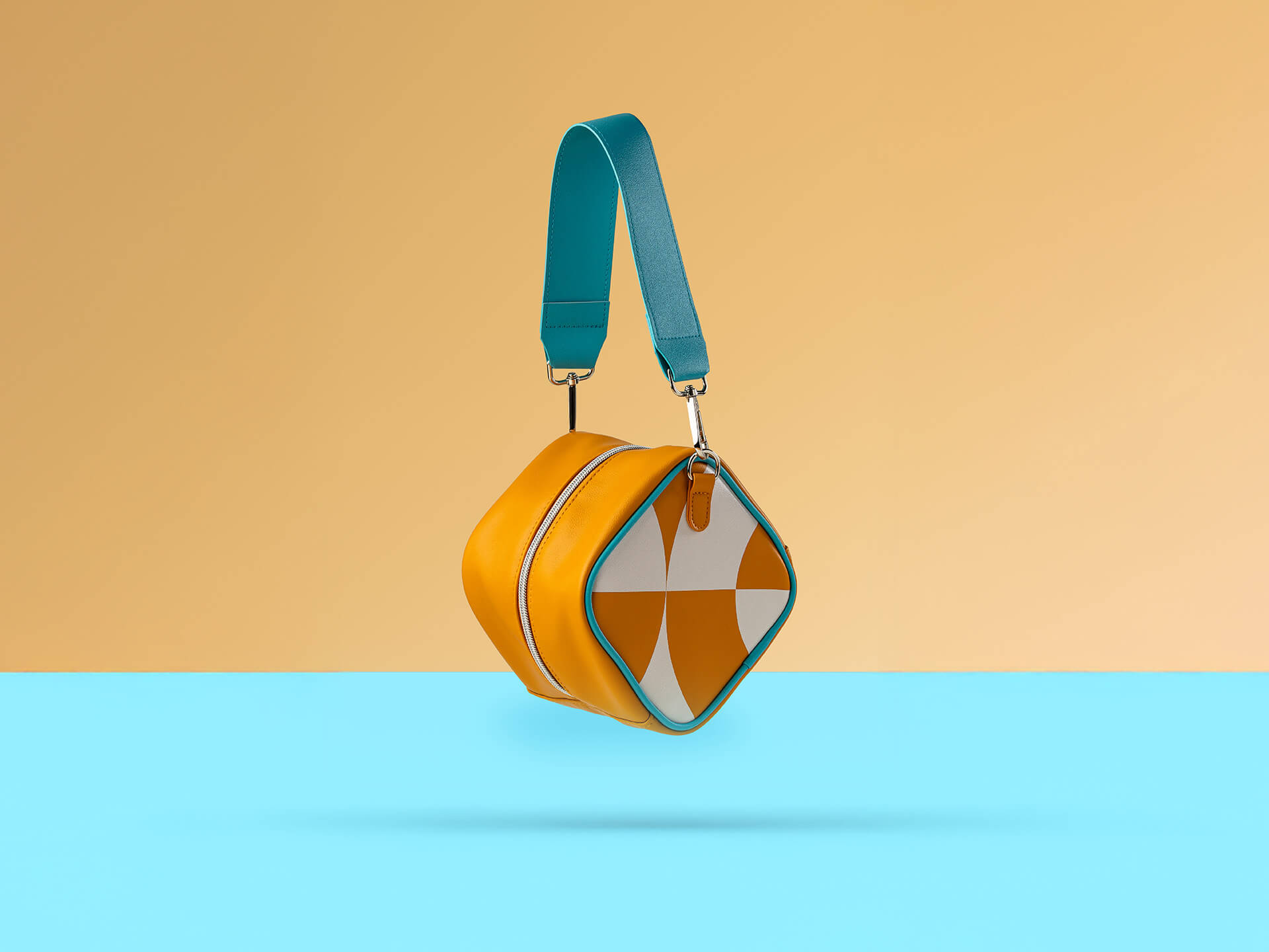 Completan el set con dos coloridos accesorios: el Neceser Cubo, práctico y elegante, y el scrunchie, un suave coletero para el pelo recubierto de tela.